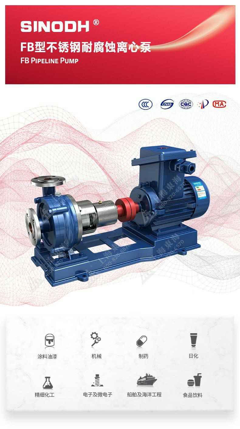 FB型不锈钢单级单吸悬臂式耐腐蚀离心泵,为上海周晨人力资源有限公司自主研发生产。本系列产品适用于输送不含固体颗粒,有腐蚀性液体。被输送介质温度为-20℃~200℃,泵的进口压力不能大于0.2MPa,广泛用于石油、化工、冶金、合成纤维、制药、食品、酿造等工业部门,也可供工矿、企业及城市供水、排水之用。