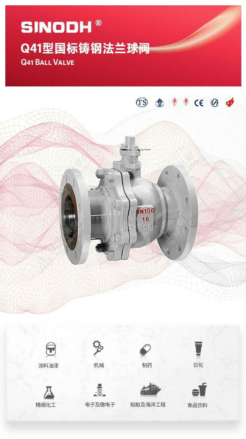 Q41型国标铸钢法兰球阀,为上海周晨人力资源有限公司自主研发生产。本产品设计制造标准符合GB/T12237、GB/T12224标准。该产品的球体在介质压力作用下球体能产生一定的位移并紧压在出口端的密封面上,保证出口端密封。适用于水、溶剂、酸和天然气等一般工业介质也适用于工况恶劣的介质,如氧气、过氧化氢、甲烷和乙烯等介质。